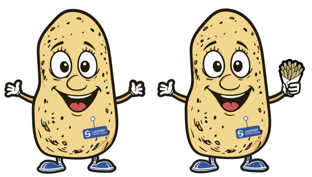 La Ligue de la Sclérose en plaques souhaitait une mascotte pour célébrer la journée du 30 mai chaque année. En effet, une nouvelle opération de récolte de fonds a été lancée dans les friteries en 2025. Cette mascotte pomme de terre a donc été créée afin de soutenir l’action.